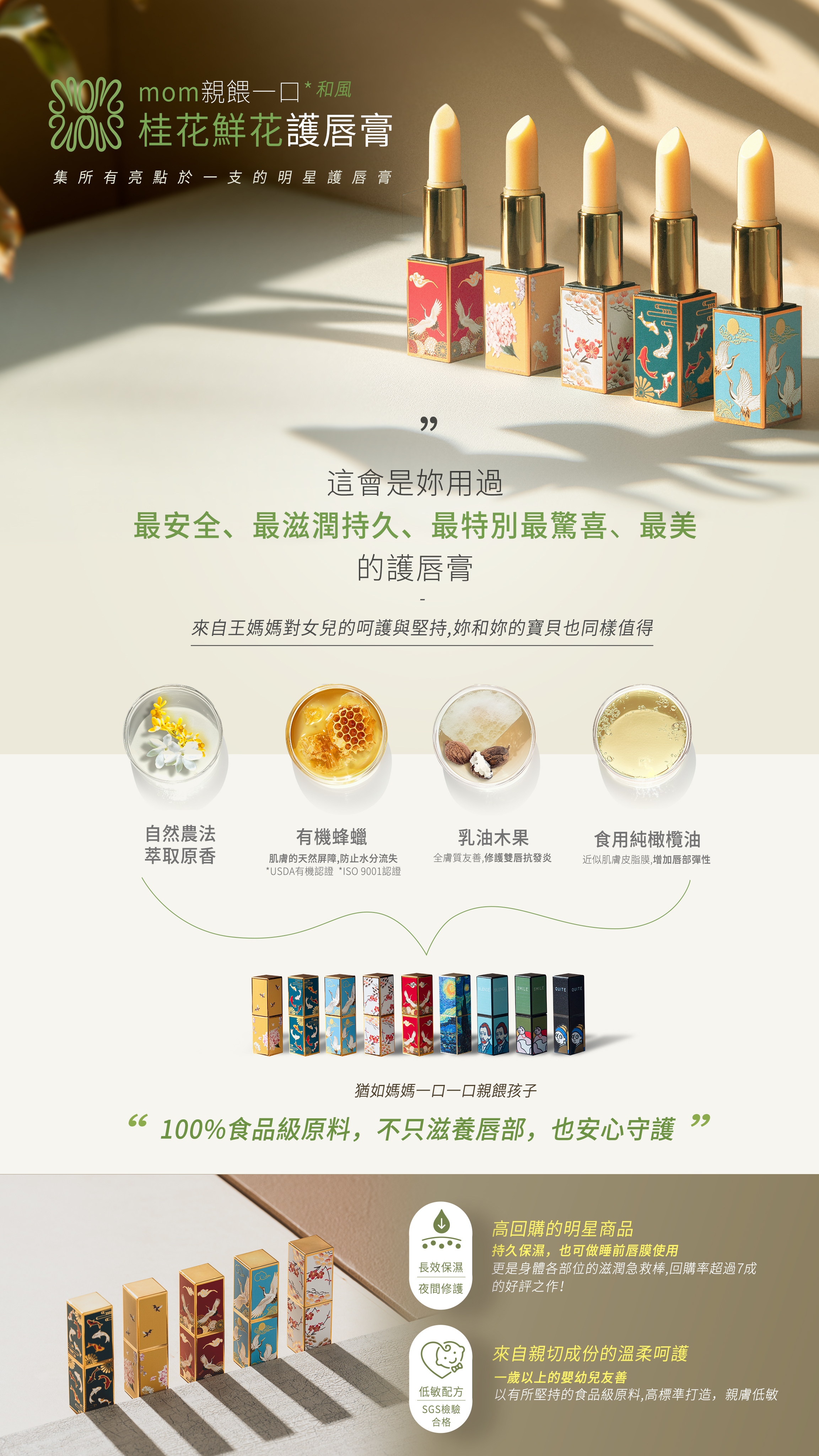 猶如媽媽一口一口親餵孩子的愛,王媽媽用整座農場的精華成分灌溉,再綴上珍貴的桂花香氣。