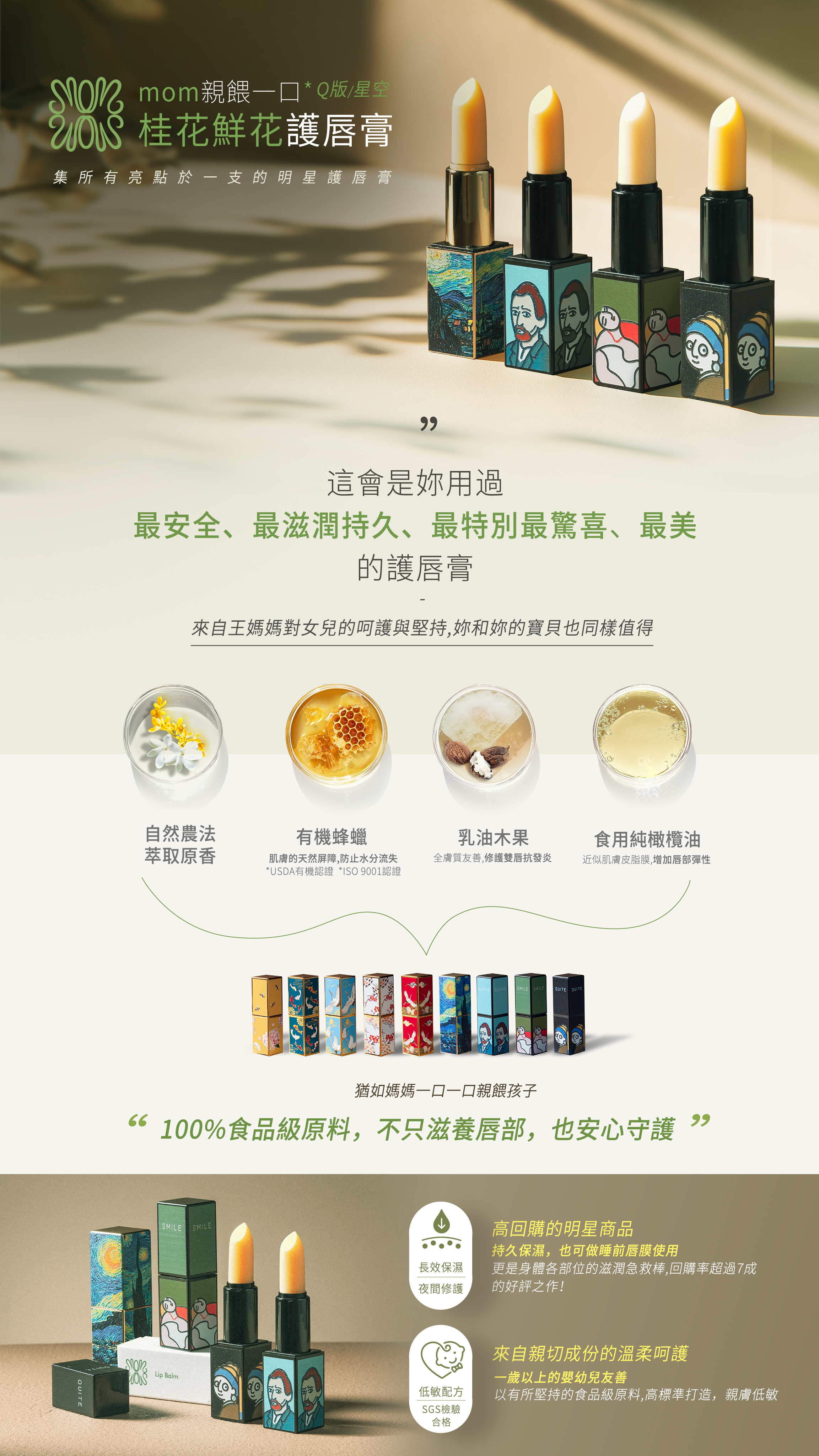 「我很肯定,這會是妳和妳的寶貝用過最安全、最滋潤持久、最特別、最驚喜、最美的護唇膏。」